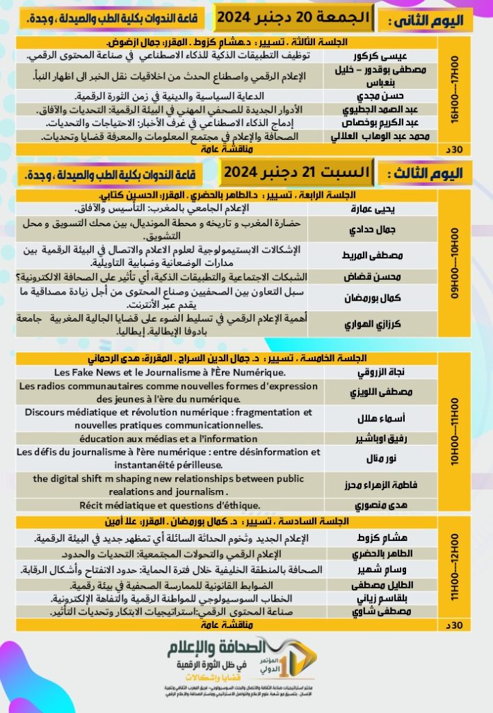وسيعرف المؤتمر مشاركة واسعة من باحثين وأكاديميين من المغرب ودول عربية مثل مصر والأردن، الذين سيتداولون عبر جلسات علمية متخصصة أبرز الإشكالات التي تواجه الإعلام الرقمي، مثل انتشار التضليل الإعلامي.